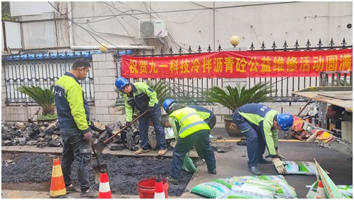 2024年11月13日上午,河南九一環(huán)保科技股份有限公司技術(shù)經(jīng)理張欣偉、工程經(jīng)理王華亭等10余名工程人員,駕駛壓路機、切割機、振動機等工程機械及4噸冷拌瀝青砼進入施工現(xiàn)場。上午10時,瀝青混凝土路面公益維修活動正式開始,經(jīng)過數(shù)小時精準(zhǔn)施工,公益活動圓滿結(jié)束。此次道路維修施工均使用河南九一環(huán)??萍脊煞萦邢薰咀灾餮邪l(fā)生產(chǎn)的環(huán)保型冷拌瀝青砼。